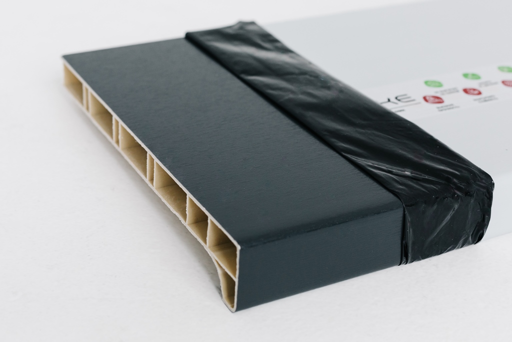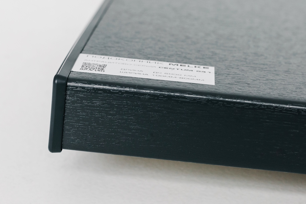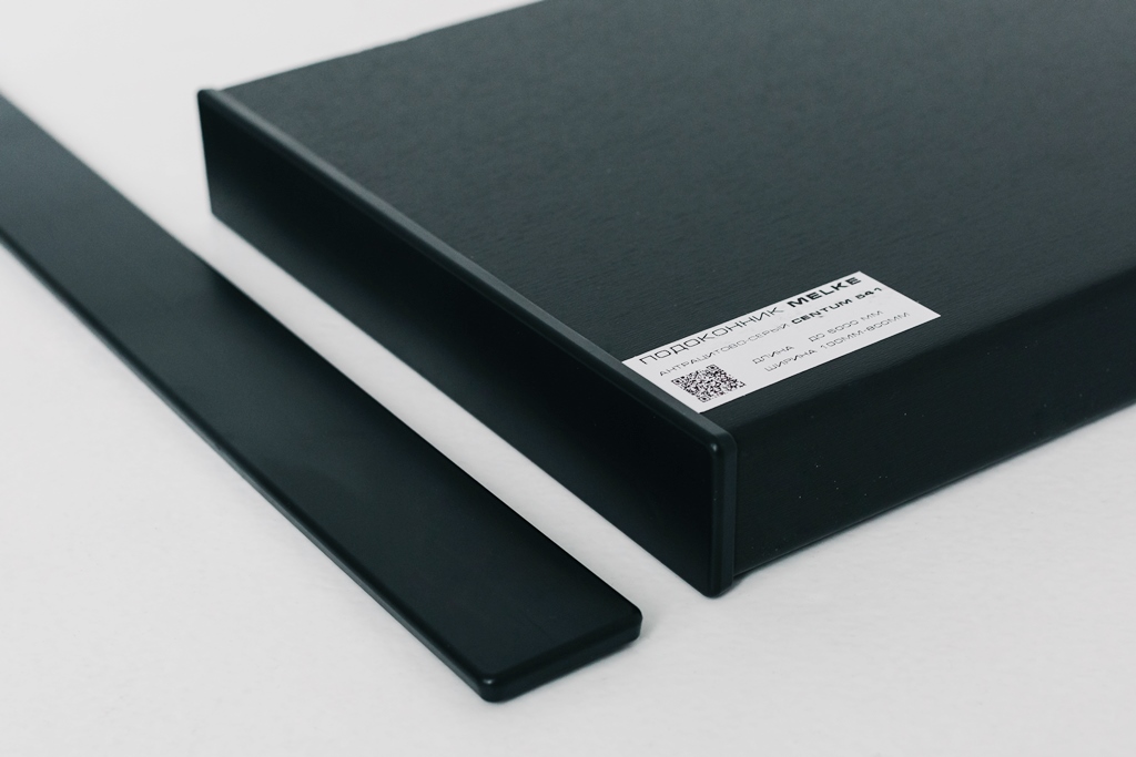 Особенностью подоконников «МЕЛКЕ» Антрацит Centum является использование декоративной пленки, надежно приклеенной к основанию с увеличенным носиком 40 мм. Эта пленка имеет не только эстетическую функцию, создавая интересный и современный образ, но и обладает высокой степенью защиты от внешних воздействий, особенно от солнечных лучей.