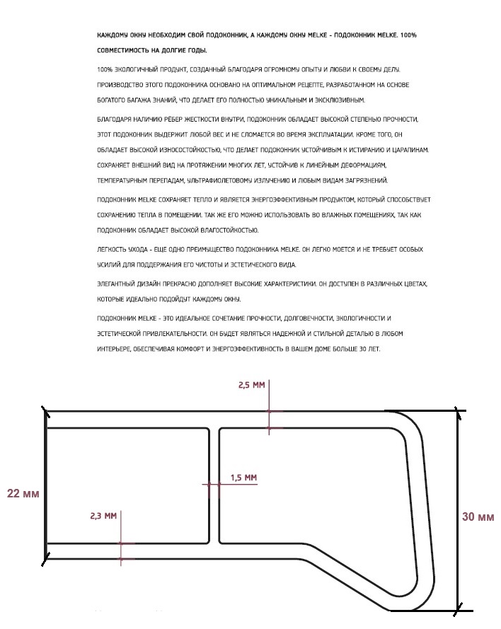 Сочетание стильного дизайна, устойчивости к выгоранию и высокой теплоустойчивости делает подоконник «МЕЛКЕ» оптимальным решением для каждого домовладельца, кто ценит качество и долговечность. Независимо от обстановки, подоконники способны преобразить ваше оконное пространство и создать атмосферу комфорта и уюта.