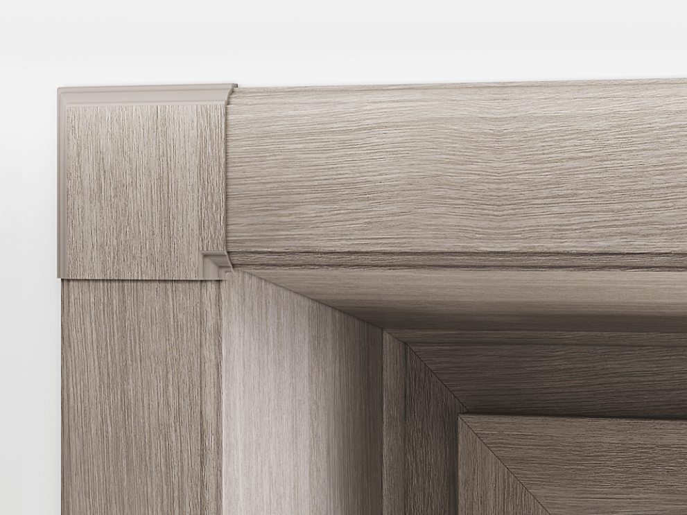 Ламинированные откосы Кюнель цвета Дуб Шеффилд. Идеально подходят к ламинированным пластиковым окнам аналогичной пленкой LG Hausys Exterior Foil. Также гармонично будут смотреться и с окнами из натурального светлого дерева.